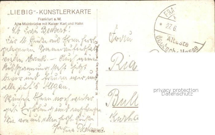 Frankfurt Main Alte Mainbruecke bei Nacht Liebig Kuenstlerkarte