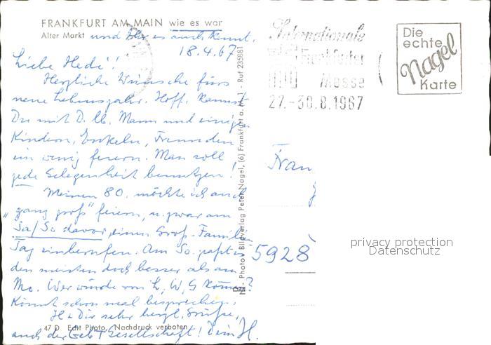 72507835 alte Postkarte Frankfurt Main Alter Markt postalisch gelaufen Erhaltung siehe scans KatCode: 11110006412000