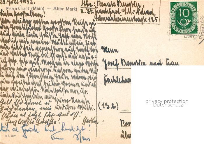 73021391 alte Postkarte Frankfurt Main Alter Markt postalisch gelaufen Erhaltung siehe scans [NatalD47] KatCode: 11110006412000