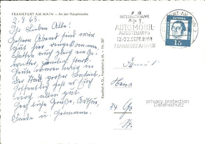 72113757 alte Postkarte Frankfurt Main An der Hauptwache postalisch gelaufen Erhaltung siehe scans KatCode: 11110006412000