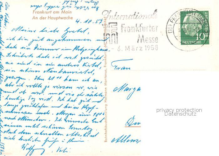 73813060 alte Postkarte Frankfurt Main An der Hauptwache postalisch gelaufen Erhaltung siehe scans [FriedD77] KatCode: 11110006412000