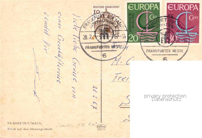 72748838 alte Postkarte Frankfurt Main Blick auf das Messegelaende Wappen postalisch gelaufen Erhaltung siehe scans [FriedD77] KatCode: 11110006412000