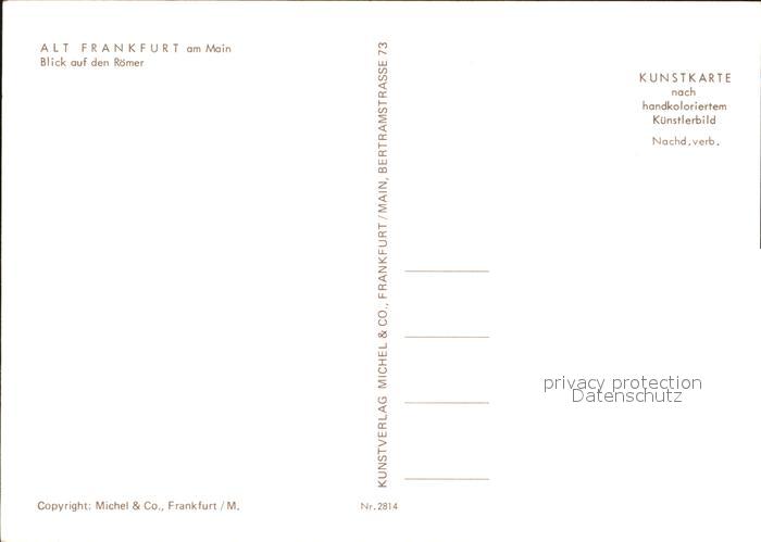 72439433 Frankfurt Main Blick auf den Roemer Kuenstlerkarte handkoloriert postalisch nicht gelaufen Erhaltung siehe scans KatCode: 11110006412000