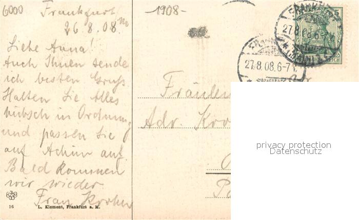 73692184 alte Postkarte Frankfurt Main Blick vom Deutschherrnkai postalisch gelaufen Erhaltung siehe scans [WerneD78] KatCode: 11110006412000