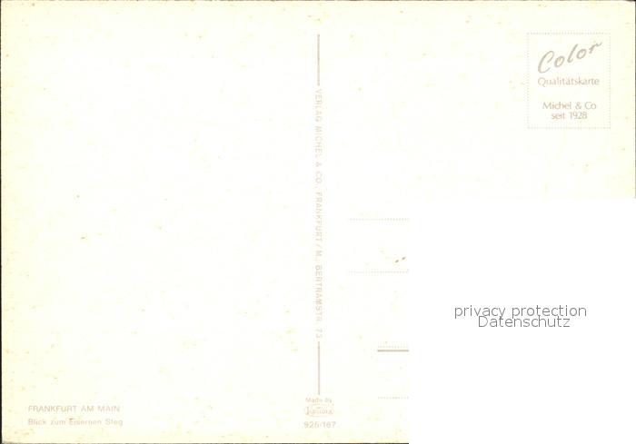 72141258 Frankfurt Main Blick zum Eisernen Steg postalisch nicht gelaufen Erhaltung siehe scans KatCode: 11110006412000