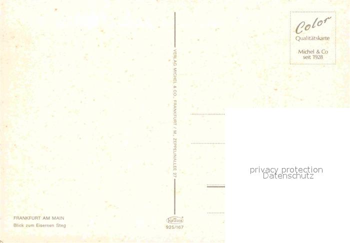 72645298 Frankfurt Main Blick zum Eisernen Steg postalisch nicht gelaufen Erhaltung siehe scans [WerneD78] KatCode: 11110006412000