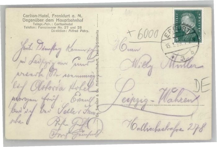40674871 Frankfurt Main Cariton Hotel postalisch gelaufen Alte Ansichtskarte Postkarte alte Postkarte Katcode 11110006412000
