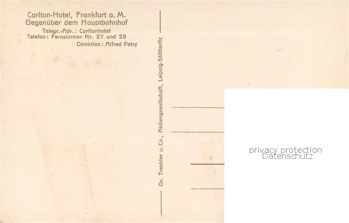 73772692 Frankfurt Main Carlton Hotel am Hauptbahnhof postalisch nicht gelaufen Erhaltung siehe scans [FriedD77] KatCode: 11110006412000