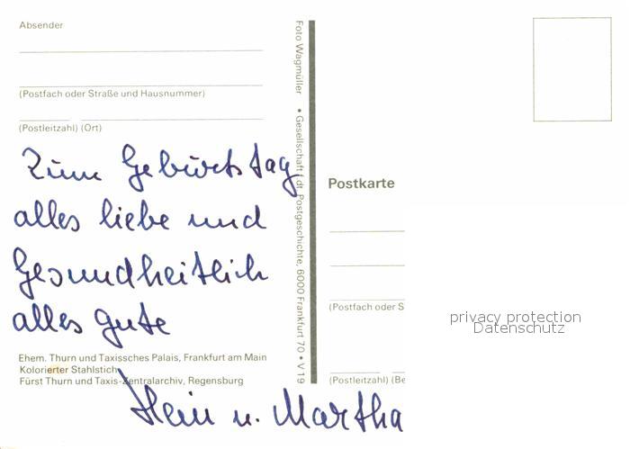 72897229 Frankfurt Main Ehemaliges Thurn und Taxissches Palais postalisch nicht gelaufen Erhaltung siehe scans [AndreD76] KatCode: 11110006412000