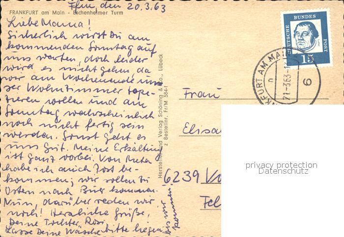 72582387 alte Postkarte Frankfurt Main Escheinheimer Turm postalisch gelaufen Erhaltung siehe scans [WerneD78] KatCode: 11110006412000