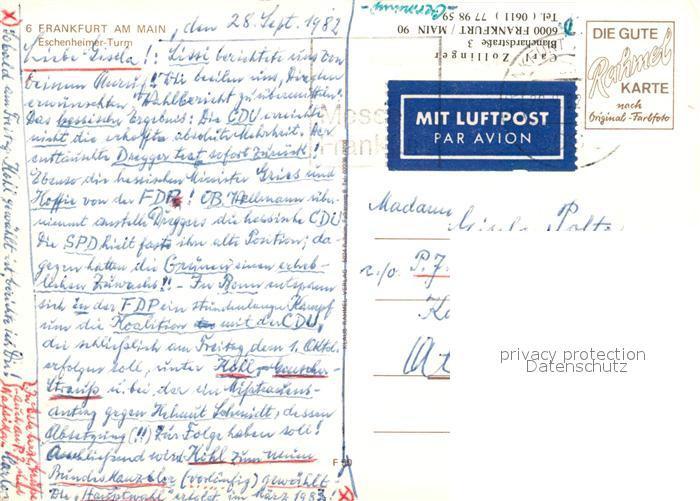73123091 alte Postkarte Frankfurt Main Eschenheimer Turm postalisch gelaufen Erhaltung siehe scans [KathaD81] KatCode: 11110006412000