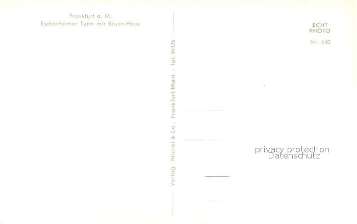 73096147 Frankfurt Main Eschenheimer Turm Bayer Haus postalisch nicht gelaufen Erhaltung siehe scans [KathaD81] KatCode: 11110006412000