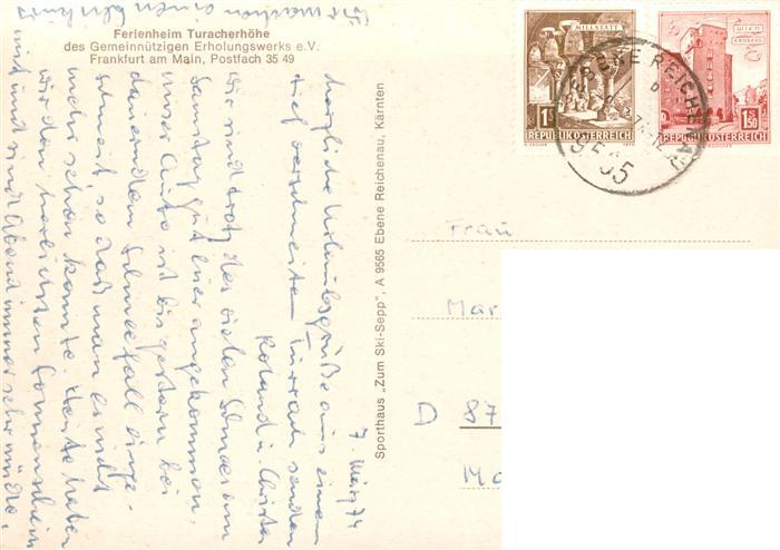 73888304 alte Postkarte Frankfurt Main Ferienhotel Turracherhoehe Fitnessraum Gastraum Hallenbad postalisch gelaufen Erhaltung siehe scans [WerneD78] KatCode: 11110006412000