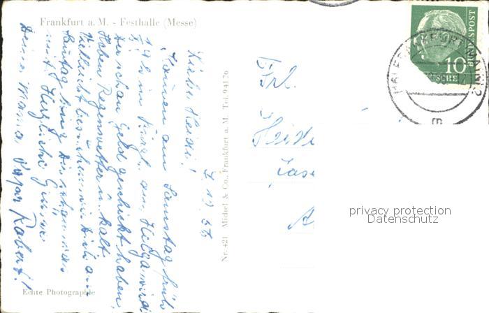 72034150 alte Postkarte Frankfurt Main Festhalle Messe Brunnen postalisch gelaufen Erhaltung siehe scans KatCode: 11110006412000