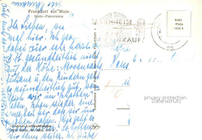 73662145 alte Postkarte Frankfurt Main Fliegeraufnahme postalisch gelaufen Erhaltung siehe scans [LiesaD40] KatCode: 11110006412000