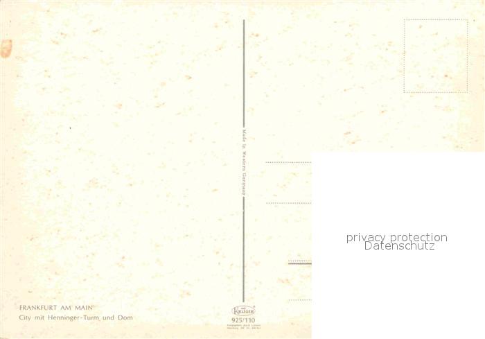 72630724 Frankfurt Main Fliegeraufnahme Hennigner-Turm und Dom postalisch nicht gelaufen Erhaltung siehe scans [LiesaD40] KatCode: 11110006412000