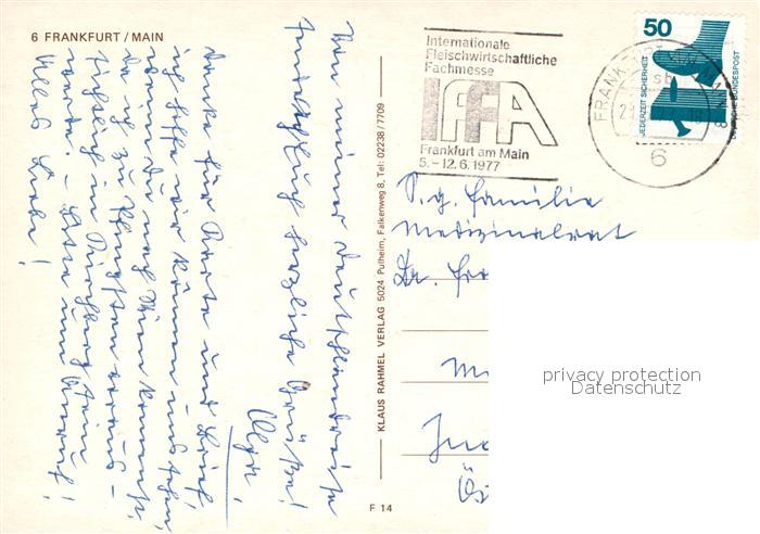73611071 alte Postkarte Frankfurt Main Fliegeraufnahme Mainpartie postalisch gelaufen Erhaltung siehe scans [LiesaD40] KatCode: 11110006412000