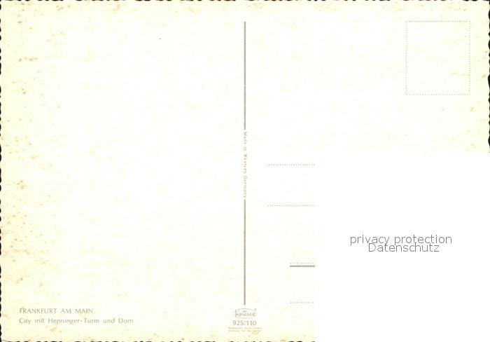 Frankfurt Main Fliegeraufnahme mit Henninger Turm und Dom postalisch nicht gelaufen Erhaltung siehe scans