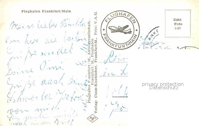 72813725 alte Postkarte Frankfurt Main Flughafen postalisch gelaufen Erhaltung siehe scans [AndreD76] KatCode: 11110006412000