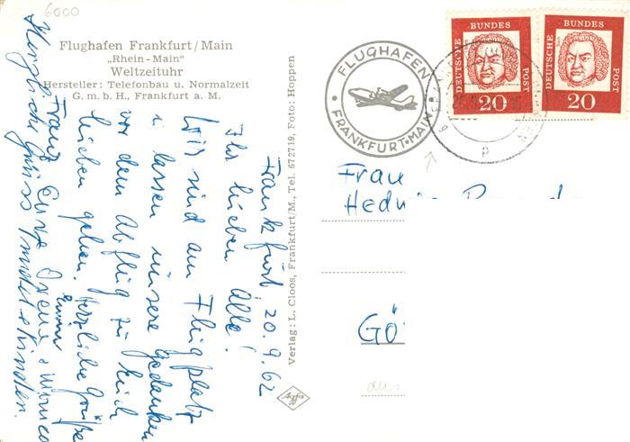 73875488 alte Postkarte Frankfurt Main Flughafen Frankfurt Rhein Main mit Weltzeituhr postalisch gelaufen Erhaltung siehe scans [WerneD78] KatCode: 11110006412000