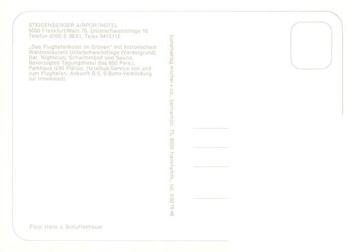 73908374 Frankfurt Main Flughafen Seigenberger Airporthotel postalisch nicht gelaufen Erhaltung siehe scans [WerneD78] KatCode: 11110006412000