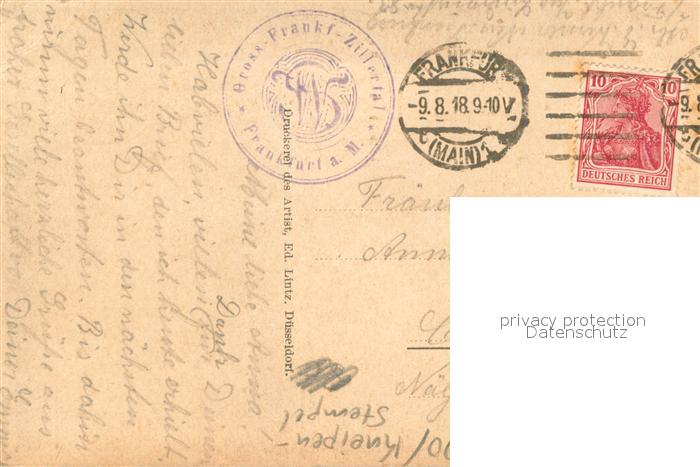 73702510 alte Postkarte Frankfurt Main Frauen-Foto mit Kneipen-Stempel postalisch gelaufen Erhaltung siehe scans [LiesaD40] KatCode: 11110006412000