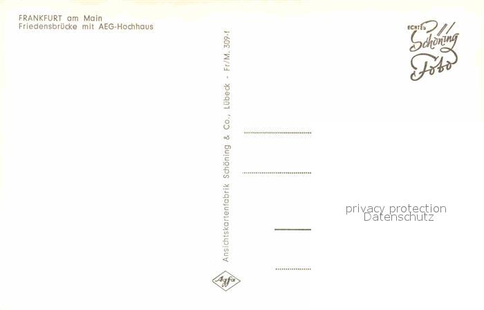72770206 Frankfurt Main Friedensbruecke mit AEG Hochhaus postalisch nicht gelaufen Erhaltung siehe scans [FriedD77] KatCode: 11110006412000