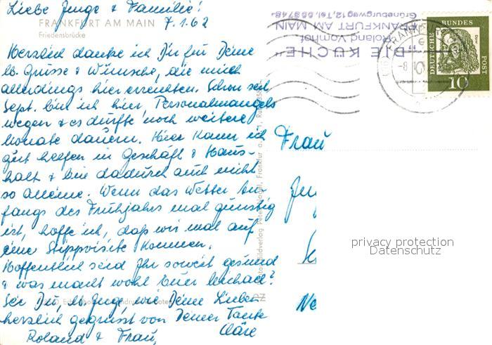 73151598 alte Postkarte Frankfurt Main Friedensbruecke postalisch gelaufen Erhaltung siehe scans [FriedD77] KatCode: 11110006412000