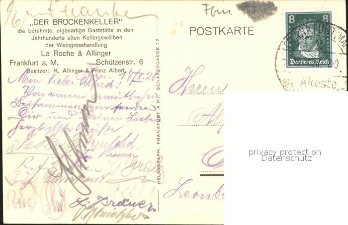 31841407 alte Postkarte Frankfurt Main Gaststaette Der Brueckenkeller postalisch gelaufen Erhaltung siehe scans KatCode: 11110006412000