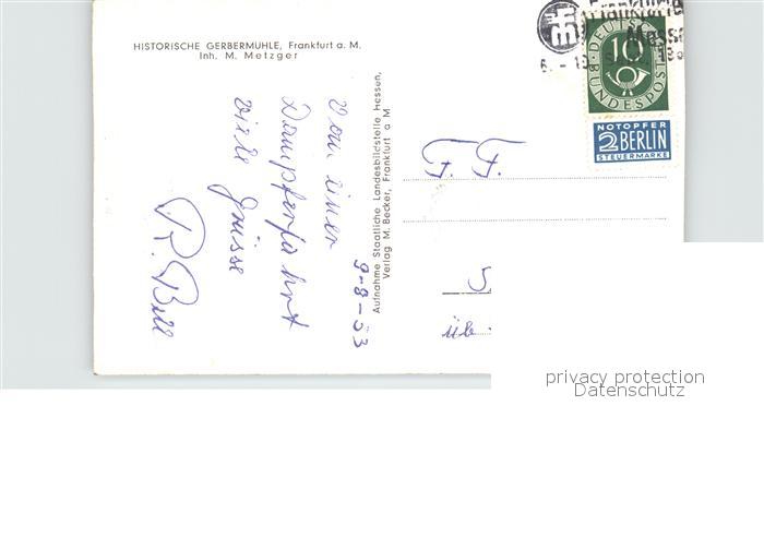 72533025 alte Postkarte Frankfurt Main Gerbermuehle postalisch gelaufen Erhaltung siehe scans [LiesaD40 kt094box] KatCode: 11110006412000