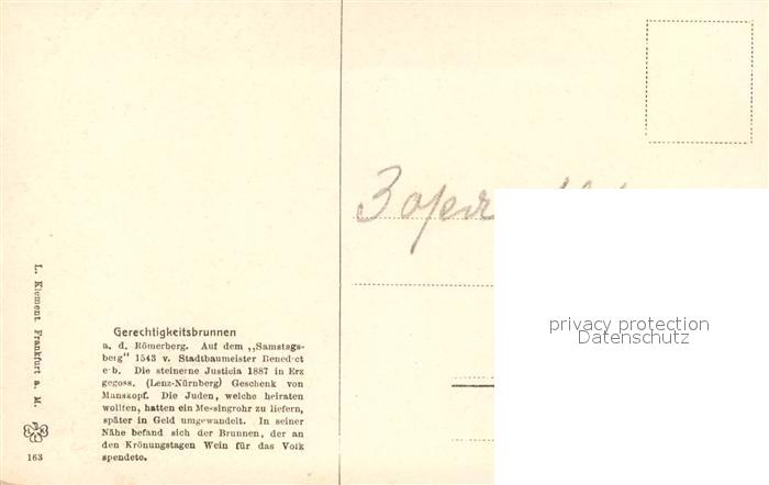 43510395 Frankfurt Main Gerechtigkeitsbrunnen am R?merberg postalisch nicht gelaufen Erhaltung siehe scans [LiesaD40] KatCode: 11110006412000