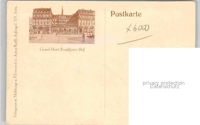 42785321 Frankfurt Main Grand Hotel Frankfurter Hof postalisch nicht gelaufen Erhaltung siehe scans [KathaD81] KatCode: 11110006412000