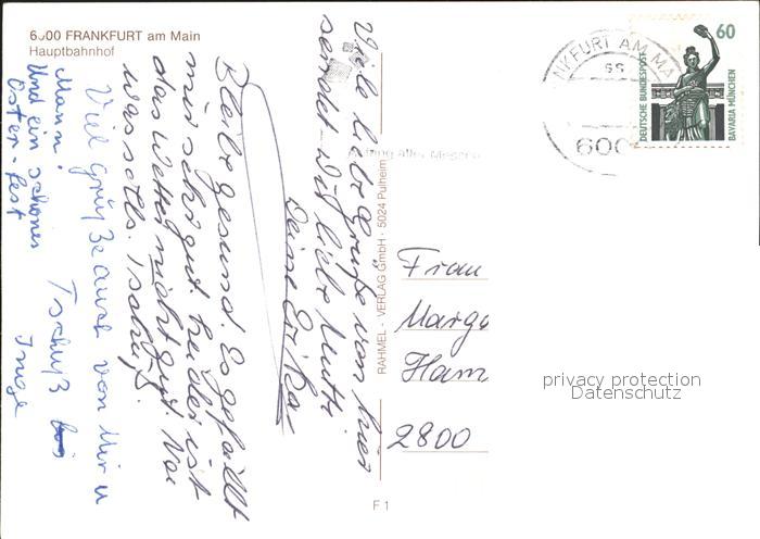 72321606 alte Postkarte Frankfurt Main Hauptbahnhof postalisch gelaufen Erhaltung siehe scans KatCode: 11110006412000