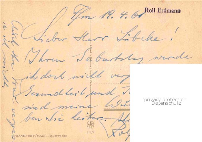72741927 alte Postkarte Frankfurt Main Hauptwache postalisch gelaufen Erhaltung siehe scans [WerneD78] KatCode: 11110006412000