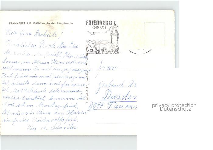 72362120 alte Postkarte Frankfurt Main Hauptwache postalisch gelaufen Erhaltung siehe scans KatCode: 11110006412000