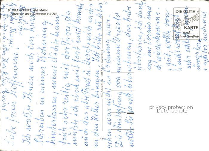 72533475 Frankfurt Main Hauptwache mit Zeil postalisch nicht gelaufen Erhaltung siehe scans [WerneD78 kt116box] KatCode: 11110006412000