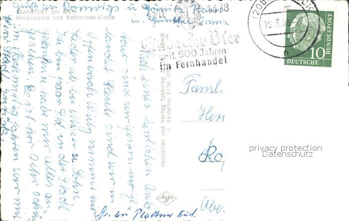 72113048 alte Postkarte Frankfurt Main Hauptwache und Katharinen Kirche postalisch gelaufen Erhaltung siehe scans KatCode: 11110006412000