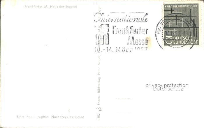 72138863 alte Postkarte Frankfurt Main Haus der Jugend postalisch gelaufen Erhaltung siehe scans KatCode: 11110006412000