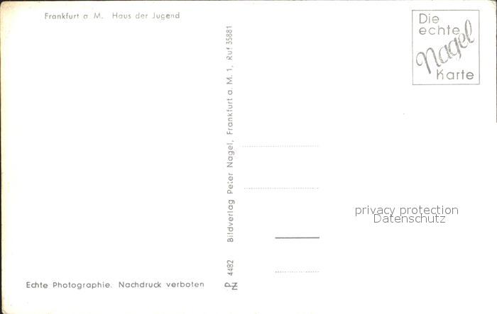 72096725 Frankfurt Main Haus der Jugend postalisch nicht gelaufen Erhaltung siehe scans KatCode: 11110006412000