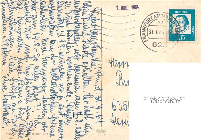 73152743 alte Postkarte Frankfurt Main Henninger Turm Nachtaufnahme postalisch gelaufen Erhaltung siehe scans [KathaD81] KatCode: 11110006412000