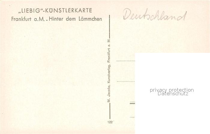 43349932 Frankfurt Main Hinter dem Laemmchen Altstadt Liebig Kuenstlerkarte postalisch nicht gelaufen Erhaltung siehe scans [FriedD77] KatCode: 11110006412000
