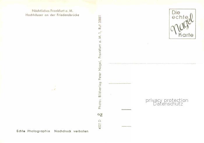 72773245 Frankfurt Main Hochhaeuser an der Friedensbruecke bei Nacht postalisch nicht gelaufen Erhaltung siehe scans [FriedD77] KatCode: 11110006412000