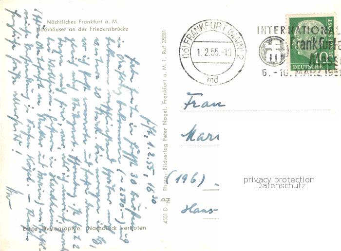 72899644 alte Postkarte Frankfurt Main Hochhaeuser Friedensbruecke postalisch gelaufen Erhaltung siehe scans [PaolaD17] KatCode: 11110006412000