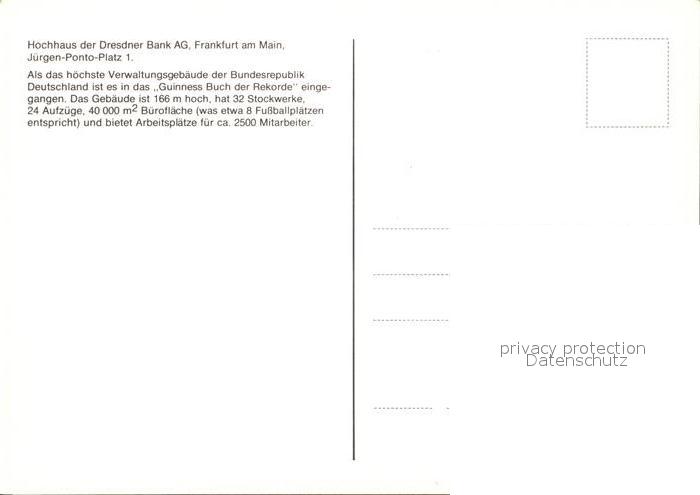 72516695 Frankfurt Main Hochhaus der Dresdner Bank postalisch nicht gelaufen Erhaltung siehe scans KatCode: 11110006412000