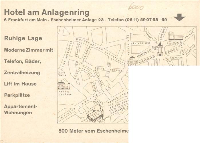 73870700 Frankfurt Main Hotel am Anlagenring Fremdenzimmer postalisch nicht gelaufen Werbekarte (keine Postkarte) Erhaltung siehe scans [FriedD77] KatCode: 11110006412000