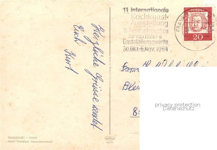 73027210 alte Postkarte Frankfurt Main Hotel Frankfurt Intercontinental postalisch gelaufen Erhaltung siehe scans [KathaD81] KatCode: 11110006412000