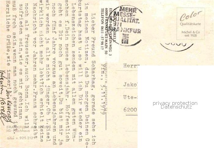 72878730 alte Postkarte Frankfurt Main IG Hochhaus postalisch gelaufen Erhaltung siehe scans [FriedD77] KatCode: 11110006412000