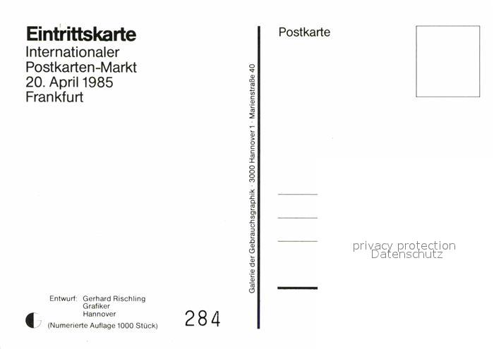 72726493 Frankfurt Main Internationaler Postkartenmarkt Hotel Intercontinental Eintrittskarte Illustration postalisch nicht gelaufen Erhaltung siehe scans [FriedD77] KatCode: 11110006412000