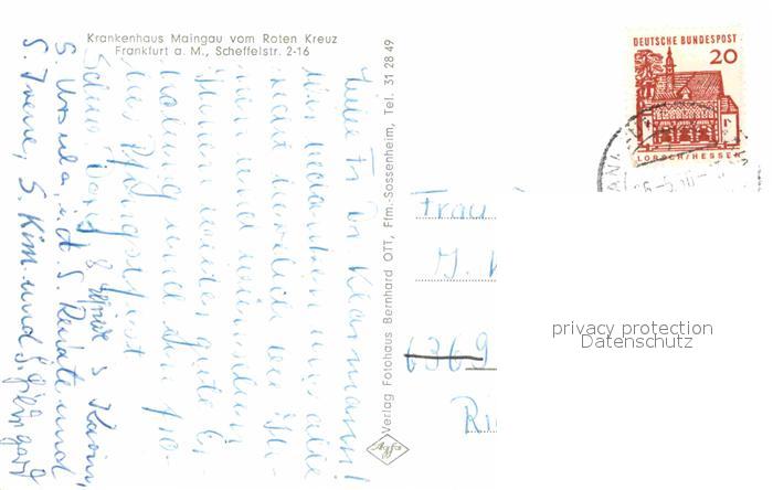 72769500 alte Postkarte Frankfurt Main Krankenhaus Maingau vom Roten Kreuz postalisch gelaufen Erhaltung siehe scans [LiesaD40] KatCode: 11110006412000