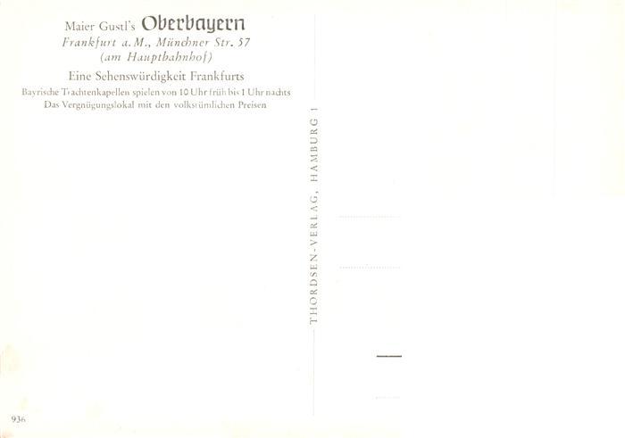 73872027 Frankfurt Main Maier Gustl’s Oberbayern Festsaal postalisch nicht gelaufen Erhaltung siehe scans [WerneD78] KatCode: 11110006412000